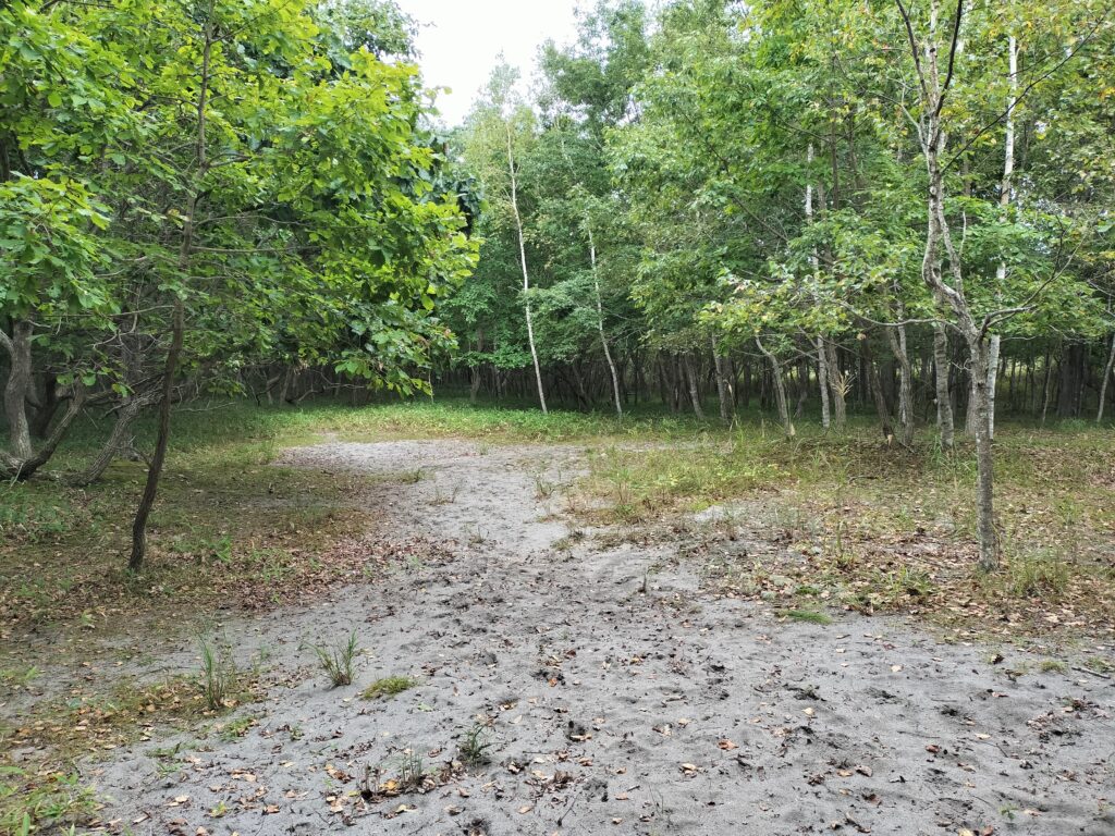 不意に現れるオープン。鹿のいい砂浴び場だね。