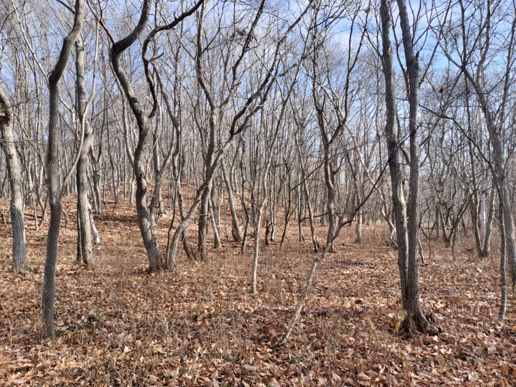 相変わらず広大な牧草地を詰めています。こういう浅い沢に設置することになるんでしょうかね。晩秋の青空とっても風流です。