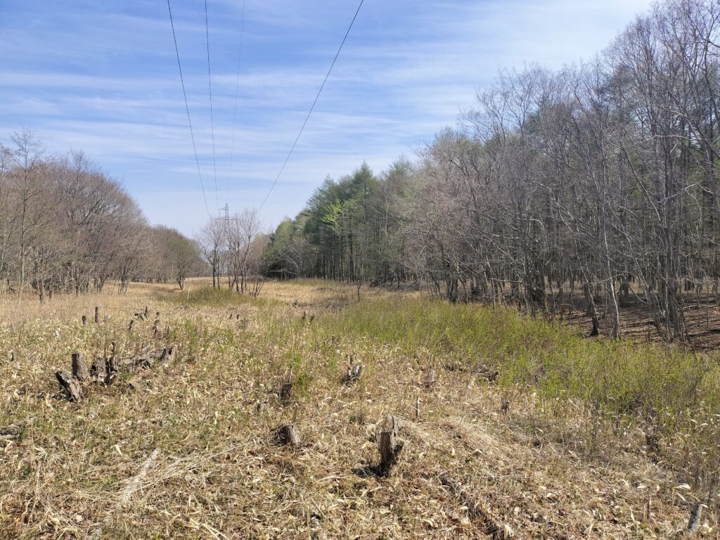 ただですね、5月初旬だと当地はまだ新緑ほやほやで真夏にどれくらいヤブくなるか占うのが難しいんですね。札幌は連休前半に桜が満開になってるけど南にある当地はまだ咲いていない。