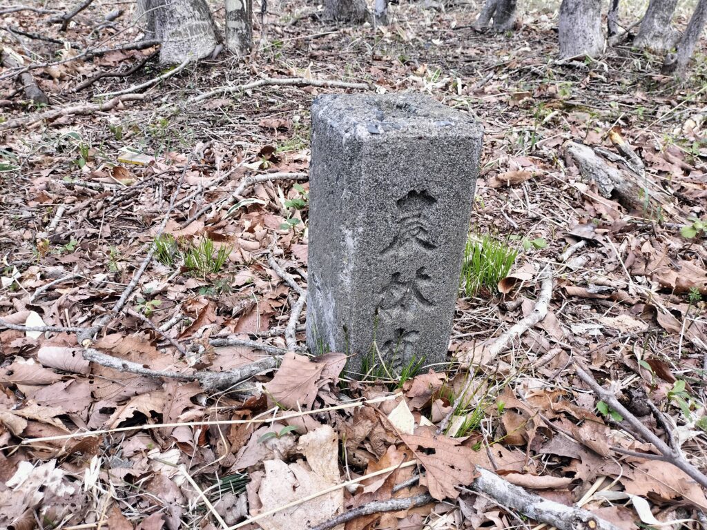 昭和中期に設置されたと思われる「農林省」の標石。他にも「建設省」の標石もありました。